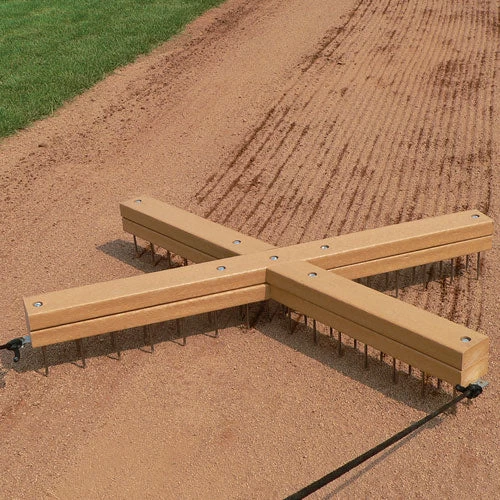 Maintain your baseball or softball diamond with this 3 ft. x 2 ft. Hand Nail Drag, which can be used to scarify the surface and allow for proper ventilation and moisture retention. By creating small cuts in the baseline, cutout and home plate areas, you can make it easier for runners to round the bases and head to home plate. Fitting easily between the 3 ft. and foul lines, the drag can be pulled along using the included pull rope for simple upkeep.
