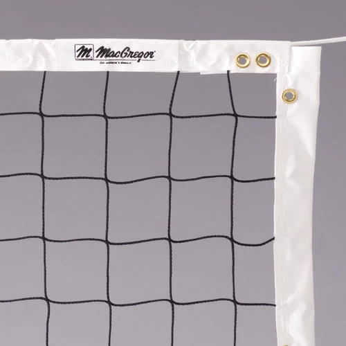 With kills, serves and hits striking it in every practice and match, the MacGregor® Master 32 ft. Volleyball Net holds up to the rigors of a volleyball season. Secure the net in place to set up for regulation play on professional volleyball courts. The cables are protected by coated-vinyl headbands in preparation for challenging power kills and low hits. Put together with knotless nylon, the net can be seamlessly rolled and unrolled in between tournaments and practices for hassle-free storage.