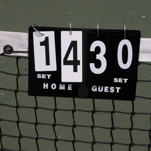 - Portable scorecard that sits on top of the net.
